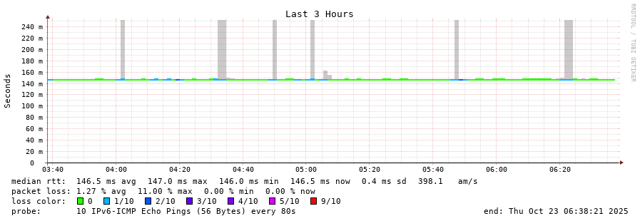 9 > 2001:4350:1:1::ff90 (2001:4350:1:1::ff90) [AS5438] 141.301ms 141.194ms 141.171ms