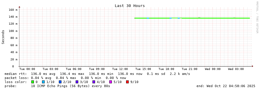 22 > 161.53.120.1 (161.53.120.1) [AS2108] 134.465ms 134.175ms 134.151ms