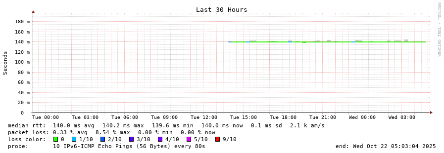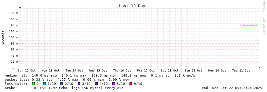 traceroute to 2a0b:2f00:0:234::151 (2a0b:2f00:0:234::151), 30 hops max, 80 byte packets - Generated at 2025-10-21 18:15:01