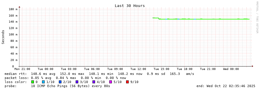 14 > 85.122.180.14 (85.122.180.14) [AS48141] 148.096ms 147.583ms 147.566ms