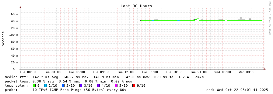 14 > 2a02:2f00:8708::e7 (2a02:2f00:8708::e7) [AS8708] 138.115ms 138.095ms 138.160ms
