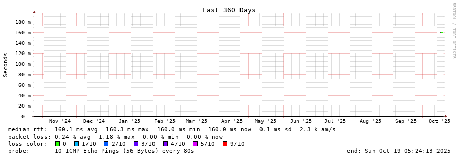 traceroute to 190.105.0.2 (190.105.0.2), 30 hops max, 60 byte packets - Generated at 2025-10-18 20:15:01