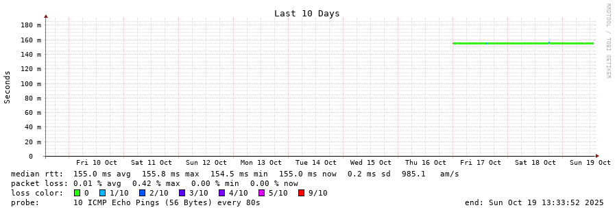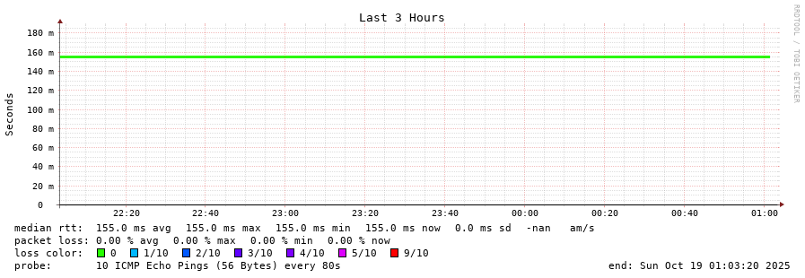 13 > 190.108.85.100 (190.108.85.100) [AS18678] 155.011ms 154.964ms 154.991ms